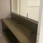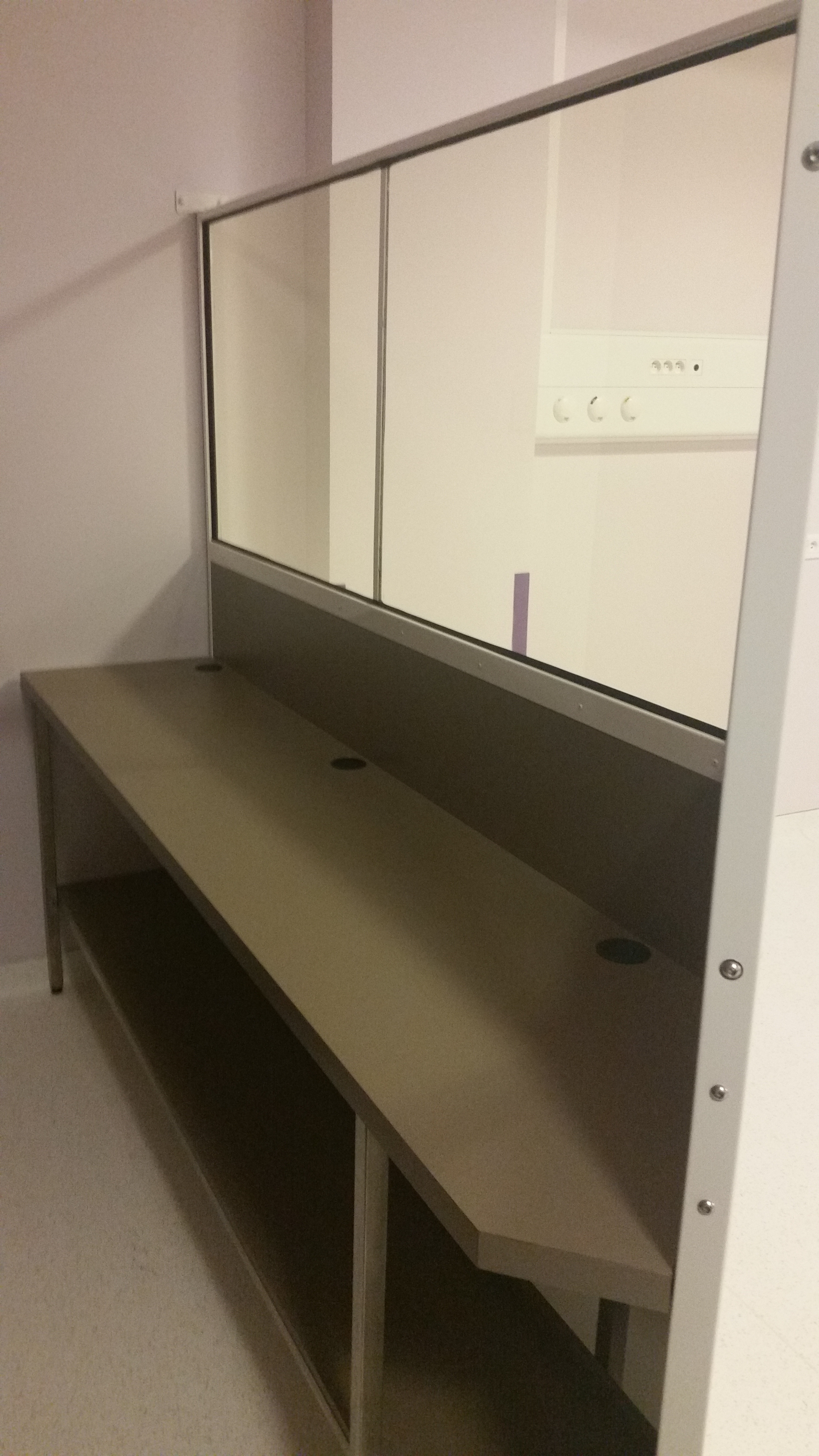 Paravent recouvert de stratifié, cadre en profilé acier laqué blanc.