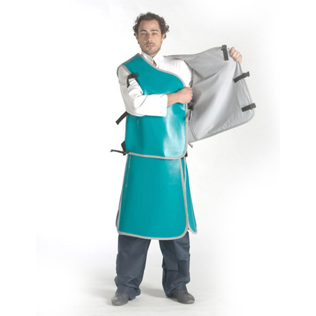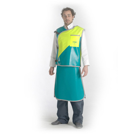 Veste : Épaulettes rembourrées, poche intérieure pour dosimètre. Fermeture de la veste au choix par scratches ou par sangles réglables et boucles type « clic clac ».